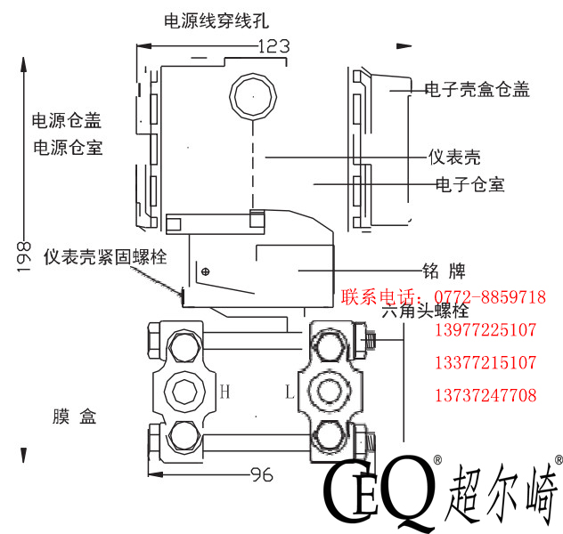 二.CEQ-1151DP/GP3051/GP遠(yuǎn)傳壓力差壓變送器外形、結(jié)構(gòu)及尺寸